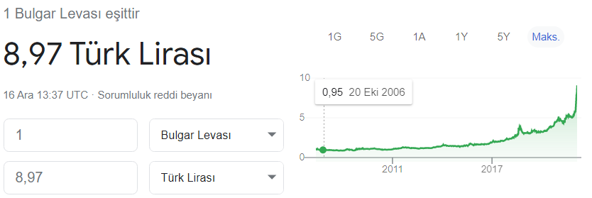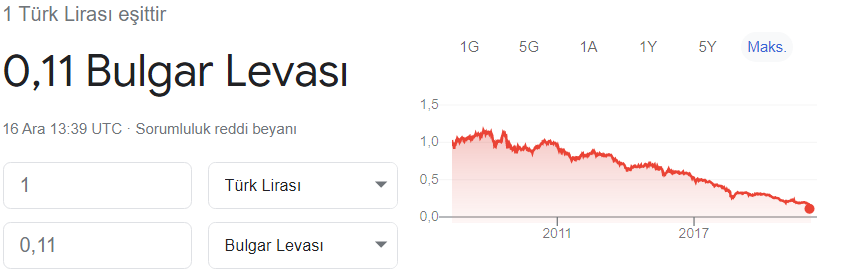 Türk Lirasındaki değer kaybı sürüyor bugün itibari ile 1 BGN 9 TL üzerine çıkarak tarihi bir rekor kırmış oldu.