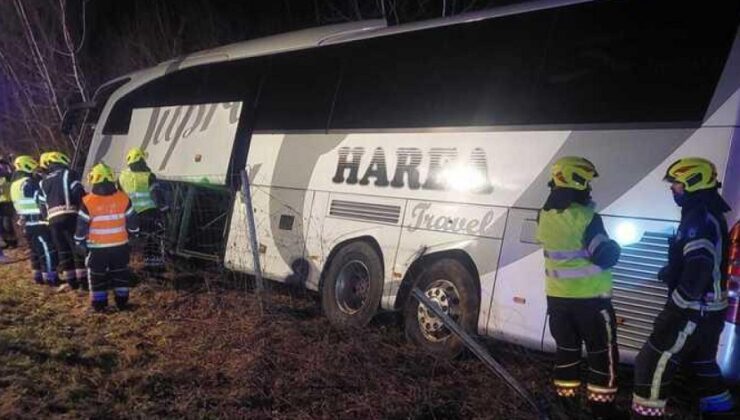 Kosovalı bir şirkete ait yaklaşık 28 kişinin bulunduğu otobüs, belirsiz nedenlerle yoldan çıkarak Hırvatistan’ın Donja Zdenčina bölgesindeki A1 otoyolunda su kanalı ve çimenlik alana kaydı.