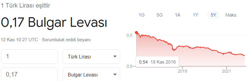 12 Kasım tarihi itibariyle 1 Türk Lirası 17 stotinkaya kadar düşerken tarihi düşüş yaşadı.